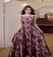 Dress ยาวตัวสวยทรงดี ตัวเดรสเลือกใช้ผ้าทอเนื้อสวยลายดอกกุหลาบสีสวยโดดเด่น
