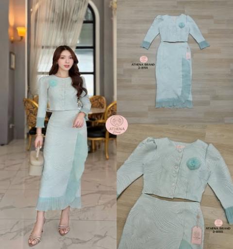 เสื้อ+กระโปรง+เข็มกลัด เสื้อแขนยาวดีไซน์ด้านหน้าแต่งกระดุมเรียงสามารถแกะใช้งานได้จริง