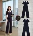 Set2ชิ้นสีดำลายทางทั้งชุด เสื้อแขนสั้น คอปกสีขาว