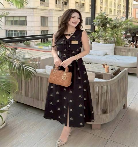 ♡DETAILS♡ ®️ "Complete Look สวยแพง สไตล์ Old Money ที่ใครเห็นก็ต้องมองตาม!" ☕🥐 มนต์เสน่ห์แห่งสีดำคลาสสิก ที่ทำให้คุณสวยโดดเด่นแบบไม่ต้องพยายาม" ✨ ✨" เดรสยาว (Maxi/Midi) ทรงเอ เข้ารูปช่วงเอว ช่วยพรางสะโพกและต้นขา ทำให้รูปร่างดูเพรียวสวย ผ้าสีดำสนิท นุ่มสวมใส่สบาย อยู่ทรงสวย โดดเด่นด้วยงานปักลายเส้นจีโอเมตริก (Geometric) สีขาว/ทองกระจายทั่วตัว เพิ่มความหรูหรา มีสายผูกโบว์ช่วงคอ เพิ่มความหวานละมุน แต่งกระเป๋าฝาพับที่หน้าอก 2 ข้าง พร้อมประดับป้ายหนังปั๊มลายที่อกซ้าย เพิ่มกิมมิคความเท่และดูพรีเมียม ชุดเดียวจบ... สวยครบทุกโอกาส (สินค้ามีจำนวนจำกัด ทักแชทก่อนไซส์หมดนะคะ!) 🛒✨