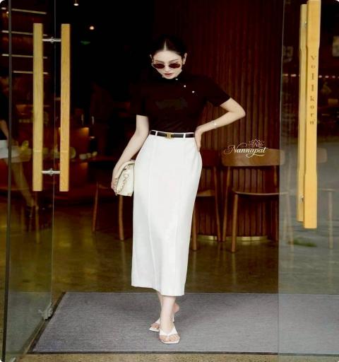 ♡DETAILS♡ ®️ "Empower Your Everyday Look… สวย สับ ฉบับผู้หญิงเก่ง" วันที่ต้องการความมั่นใจเป็นพิเศษ ลองให้ชุดนี้เป็นคำตอบสิคะ! 3 in 1 คุ้มสุดๆ ✨" เสื้อคอปกสีดำสนิท ดีไซน์ร่วมสมัย คลาสสิกแต่ไม่น่าเบื่อ กิมมิคโดดเด่นด้วยดีเทลสาบเสื้อแบบป้ายเฉียง (Asymmetrical) ประดับกระดุมสีทองสุดหรู 3 เม็ด เพิ่มความแพงให้กับลุค แขนสั้น ทรงเข้ารูปพอดีตัว ช่วยเสริมบุคลิกให้ดูสมาร์ท กระโปรงยาวทรงตรง (Straight/Pencil Skirt) สีขาวออฟไวท์ ความยาวระดับหน้าแข้ง (Midi-Maxi) ให้ลุคที่ดูสุภาพและสง่างาม มีดีเทลเดินตะเข็บตีเกล็ดด้านหน้าเป็นเส้นตรง ช่วยพรางสายตาให้ช่วงขาดูเรียวยาวขึ้น ปลายกระโปรงด้านหน้ามีรอยผ่าเล็กน้อย เพิ่มความเก๋และช่วยให้ก้าวเดินได้สะดวก พร้อมเข็มขัดให้ดูคอมพลีทลุคยิ่งขึ้น ใส่แล้วดูเป็นผู้หญิงเก่งที่มีรสนิยม จนใครๆ ก็ต้องเหลียวมอง ✨📸