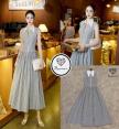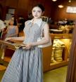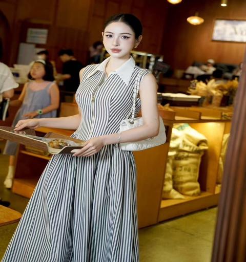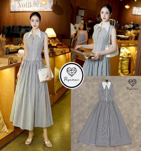 เดรสคอปกเชิ้ตตัวยาวลายทางสีดำ แต่งดีเท็ลสวยมากกกกก