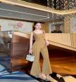 เพลย์สูทขายาวตัวสวยทรงดี เนื้อผ้าทวิตทอเลื่อมสวยทั่วทั้งตัว