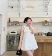 มินิเดรสคอปก แต่งขอบระบายเล็กๆ ตามแนวคอวีด้านหน้า ช่วยนำสายตาให้ช่วงคอดูระหง