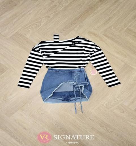 VR Signature by VORA   ♡ 990  พร้อมเสิร์ฟจ้า Available Now!!  รุ่นนี้มี S M L จ้า Detail :: Set เสื้อแขนยาวทรงปาดไหล่ แต่งสาย ปักรูปหัวใจช่วงอก ทรง oversize เนื้อผ้ายืดใส่สบายค่ะ แมทช์กับกระโปรงยีนส์สั้น แต่งสานไขว้ด้านข้าง มีกางเกงขาสั้นด้านใน ไม่ต้องกลัวโป๊เลยค่ะ เนื้อผ้ายีนส์เนื้อดี สามารถใส่แยกกับชุดอื่นได้อีกเยอะเลยคะ ต้องจัดนะค่า ... ใส่ออกมาแล้วเป๊ะเว่อร์ แพทเทรินเนี๊ยบสุดๆ สามารถใส่ได้ในทุกโอกาสเลยค่า...  ป้าย VR Signature คัดสรรลวดลายและรูปแบบ รวมทั้งเนื้อผ้าและโรงงานที่มีความชำนาญในการตัดเย็บ แบบแพทเทริ์นที่ใส่ออกมาแล้วเป๊ะ!! และคุณภาพที่ดีที่สุด... Size :: โดยประมาณ S :: อก 44 เอว 26 สะโพก 36 M :: อก 46 เอว 28 สะโพก 38 L :: อก 48 เอว 30 สะโพก 40  เสื้อยาว 23" กก.ยาว 15"  ขนาดไซส์ที่แจ้ง มาจากการวัดจากสินค้าจริงตามสายวัด ทางร้านไม่รับเปลี่ยนหรือคืนในกรณีใส่แล้วไม่พอดีทุกกรณีนะคะ   รูปถ่ายสินค้าจริงอาจสีเพี้ยนไปเล็กน้อยขึ้นอยู่กับแสงหรืออุปกรณ์ที่ใช้ของแต่ละเครื่องนะคะ   Care : ซักมือหรือซักแห้งเท่านั้น เพื่อถนอมเนื้อผ้า (Hand Wash or Dry Clean only) |