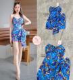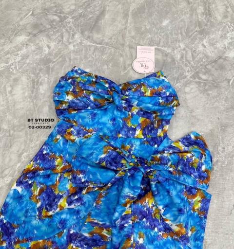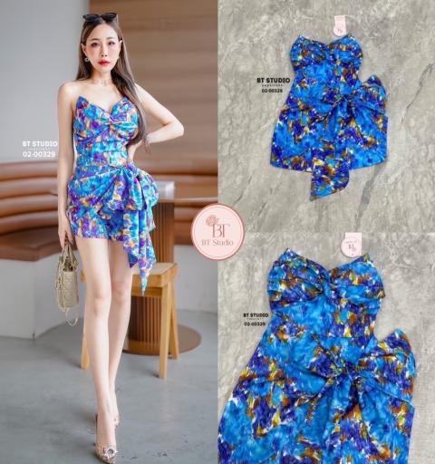 DETAIL : เพย์สูทขาสั้นเกาะอกช่วงอกดีไซส์รูปหัวใจ อกเสริมฟองน้ำ อกเอวสะโพกเข้ารูปช่วงกางเกงแต่งชายป้ายผูกเอวอีกข้าง งานพิมพ์ลายสีน้ำโทนสีน้ำเงิน งานสวยเนื้อผ้าดีมีซับใน ใส่สวยขับผิวออร่ามาก