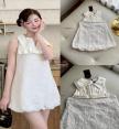 มินิเดรสคอปก แต่งขอบระบายเล็กๆ ตามแนวคอวีด้านหน้า ช่วยนำสายตาให้ช่วงคอดูระหง
