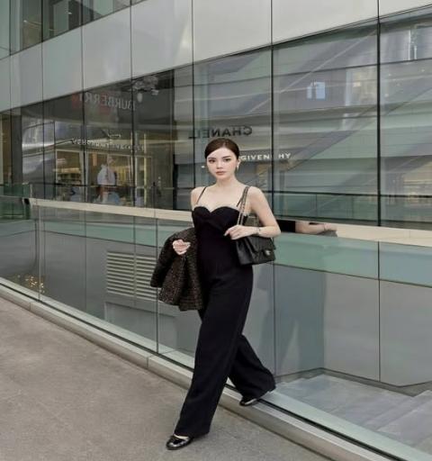 Set 2 ชิ้นสุดคุ้ม: ประกอบด้วย Jumpsuit สายเดี่ยว และเสื้อคลุมทรง Crop ผ้าทวีด
