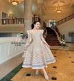พิมพ์ลายทรงเจ้าหญิงดีไซน์ตัดต่อผ้าแต่งระบาย