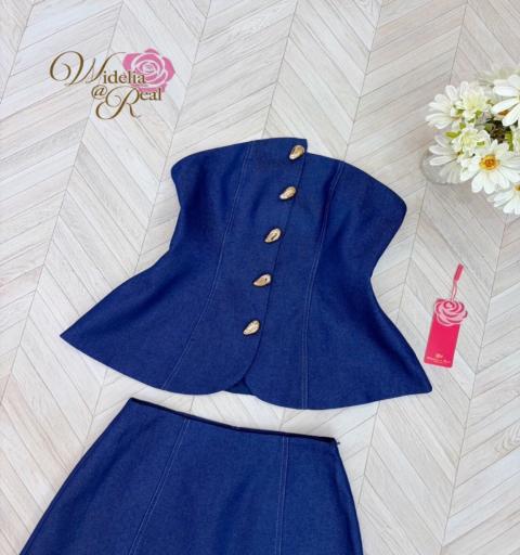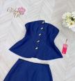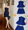 Set เสื้อเกาะอกกับกระโปรงสั้น เสื้อกระดุมทอง กระโปรงเอวสูง