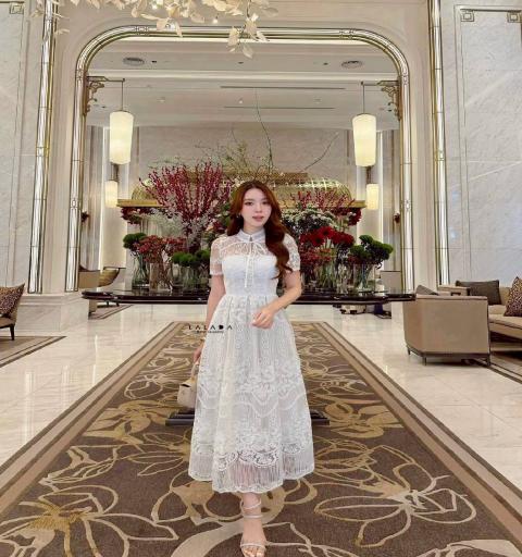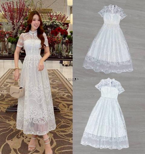 เดรสเรียบหรู มีแขน ผ้าลูกไม้อย่างดี ตัดเย็บปราณีต สีขาวสวยหรู