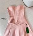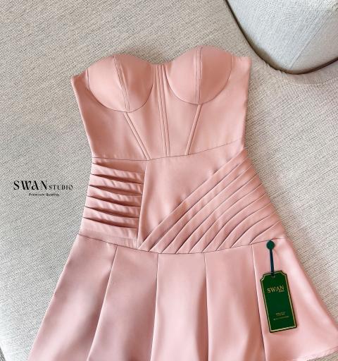 เดรสสายเกาะอกโทนชมพูหวานละมุน ดีไซน์ทรงเข้ารูปแบบคอร์เซ็ตช่วยเก็บทรงและเน้นสัดส่วนให้ดูเอวคอดอกสวย