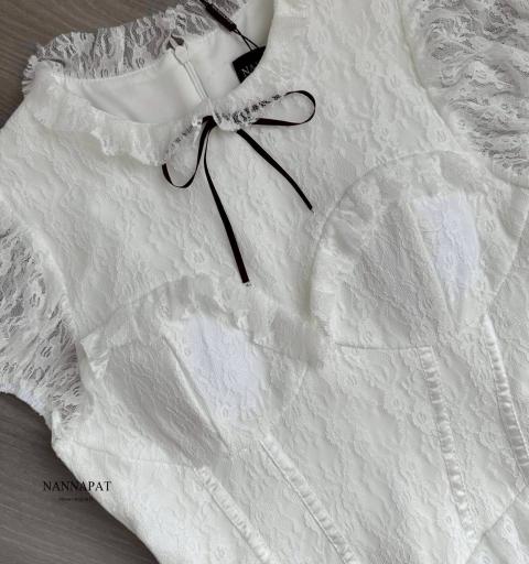 TAG :: NANNAPAT (NP)  CONCEPT :: งานต้อง Premium กำไรน้อยไม่ว่า คุณภาพ เละ เนื้อผ้าต้องดี  ♡DETAILS♡   "หวานละมุนจนคนมองต้องเหลียวหลัง... แม็กซี่เดรสลูกไม้สไตล์ Coquette ที่สาวๆ ต้องมีติดตู้" สัมผัสความโรแมนติกขั้นสุดกับเดรสยาวลูกไม้สีขาวจาก NANNAPAT ชุดนี้คือความสมบูรณ์แบบที่ผสานความหวานและความหรูหราไว้ด้วยกันอย่างลงตัวค่ะ! โดดเด่นด้วยดีเทลช่วงบนที่ออกแบบมาในทรงคอร์เซ็ต (Corset) ช่วยจัดทรงให้เข้ารูปดูมีเอว แต่งขอบระบายช่วงอกเพิ่มความอ่อนหวาน และกิมมิคสุดคิวท์ด้วยโบว์เส้นเล็กสีดำที่คอเสื้อ ให้กลิ่นอายความวินเทจแบบคุณหนูยุโรป ช่วงกระโปรงยาวที่เย็บต่อผ้าลูกไม้เป็นชั้นๆ (Tiered skirt) เวลาเดินจะพริ้วสวยทิ้งตัวดูมีมิติมากๆ ผ้าลูกไม้นิ่มใส่สบาย ซับในทั้งตัวไม่คันนะคะ  ชุดนี้ตอบโจทย์หลายโอกาสเลยค่ะ ไม่ว่าจะใส่ไปทำบุญ ไปเที่ยวชมสถานที่ประวัติศาสตร์ ถ่ายรูปคาเฟ่สวนดอกไม้ หรือแม้แต่ใส่เป็นชุดพรีเวดดิ้ง/Bridal Shower ก็รับรองว่าสวยออร่าพุ่งที่สุดในงานแน่นอน    COLOR 》》》  NP. STANDARD SIZE  ( Size โดยประมาณนะค่ะ) S }} Bust 32-33"/ Waist 27"/ Hip free M }} Bust 34-35"/ Waist 29"/ Hip free L }} Bust 36-37"/ Waist 31"/ Hip free XL }} Bust 38-39"/ Waist 33"/ Hip free  Care Dry clean only ควรซักแห้ง หรือ ซักมือ และเลี่ยงน้ำยาซักผ้า เพื่อเป็นการถนอมผ้า และ ลดความเสียหายวัสดุตกแต่ง นะคะ  ตรวจสอบสินค้าทุกครั้งก่อนออกจากร้านนะคะ จะได้ไม่เสียเวลาคะ  เปลี่ยนคืนสินค้ามีตำหนิต้องภายใน 10 วันนะคะ ป้ายไม่ตัด ห่อเดิมนะคะ  ได้รับสินค้าแล้ว ถ่ายวีดีโอตอนแกะเช็คสินค้าทุกครั้ง เผื่อมีปัญหา จะได้ใว้ยืนยันเพื่อการเปลี่ยนคืนนะคะ |