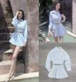 เซ็ตเสื้อเชิ้ตคอปกแขนยาวมาในแบบทรงcropทำให้หุ่นดีเอวเล็ก
