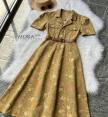 เดรสยีนส์คอปกแขนสั้นตัวยาว แต่งกระดุมด้านหน้า แต่งลายดอกทั้งชุด