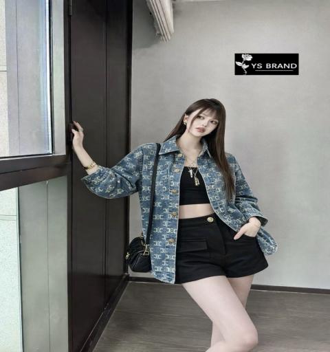 เสื้อคลุมยีนส์ Celine แขนยาว คอปก เย็บกระดุมCelineด้านหน้า