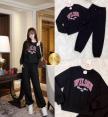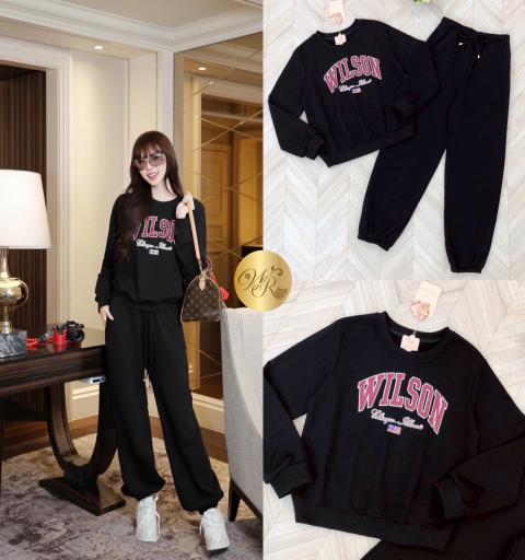 Set วอม เสื้อแขนยาวกับกางเกงขายาว เสื้อทรงหลวม สกรีนหน้าอก กางเกงเอวสม็อค