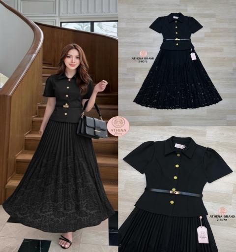 เสื้อ+กระโปรง+เข็มขัด เสื้อคอปกดีไซน์ด้านหน้าแต่งกระดุมเรียงสามารถแกะใช้งานได้จริง