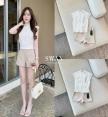 Set เสื้อลูกไม้คอสูง แต่งระบายเล็กเพิ่มความหวานละมุน
