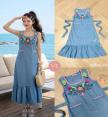 Detail :: Dress ตัวยาว แขนกุด แต่งปักกุ๊นขอบ ช่วงอกปักดอกไม้แน่นๆเลยค่ะ แต่งกระเป๋าด้านหน้า แต่งเชือกผูกโบว์เข้ารูปด้านหลัง แต่งระบายชายกระโปรง เนื้อผ้ายีนส์เนื้อหนา เป็นทรง มีน้ำหนักทิ้งตัวสวย มีซับในทั้งชุดค่า ... ใส่ออกมาแล้วเป๊ะเว่อร์ แพทเทรินเนี๊ยบสุดๆ สามารถใส่ได้ในทุกโอกาสเลยค่า...