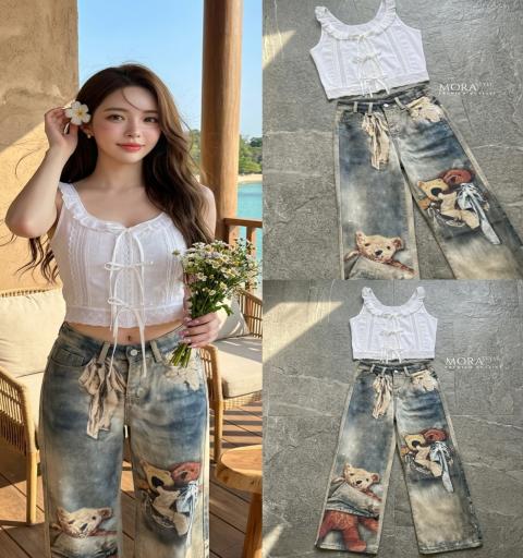 งานสุดปัง Mora style พร้อมเสริฟ  โมราสไตล์  ••Tag : Mora••   : เซ็ท 2 ชิ้น เสื้อกล้ามแต่งระบายช่วงคอ ด้านหน้าเป็นแบบผูก งานจริงน่ารักมาก มาพร้อมกับกางเกงยีนส์เอวสูงขากระบอก พิมพ์ลาย น้องหมีทั้งตัว ทรงสวย ใส่แมทช์คือสวยมากๆค่าาา  ขนาดโดยประมาณ +/-  Size : S M L XL Size  S : อก ฟรี” เอว 24-25" สะโพก 37-38” ยาว 40“  M : อก ฟรี” เอว 26-27" สะโพก 38-39“ ยาว 40“  L : อก ฟรี” เอว 28-29" สะโพก 39-40” ยาว 41”  XL: อก ฟรี” เอว 30-31" สะโพก 40-41” ยาว 41” ••เสื้อ อกได้ถึง 32-36“ ยาว 19”  : สีของรูปชุด ขึ้นอยู่กับอุปกรณ์ที่ใช้ถ่าย และ อุปกรณ์ที่แสดงภาพ รวมถึงแสงขณะทำการถ่ายภาพ |