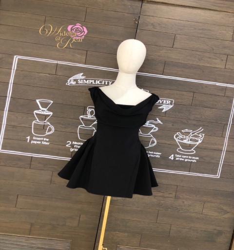 เดรสคอถ่วง แขนกุด (ใส่ได้2แบบ สามารถใส่แบบปาดไหล่ได้) ด้านหลังเว้าผูกโบว์