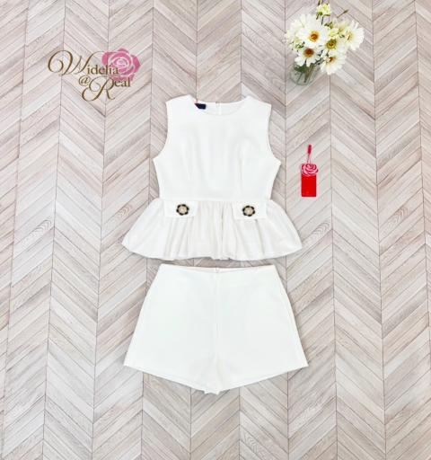 Set เสื้อแขนกุด+กางเกงขาสั้น ตัวเสื้อมีเข็มกลัดดอกไม้ 2 ดอก