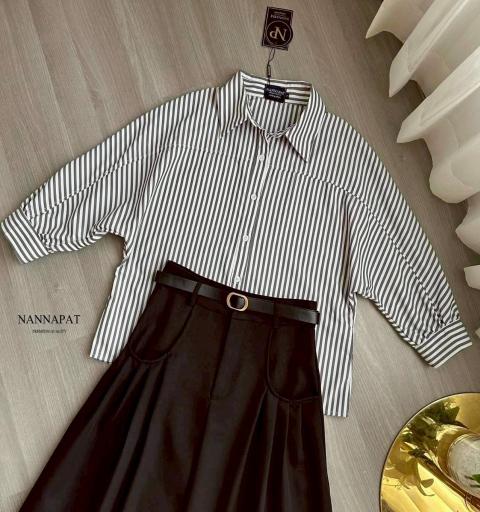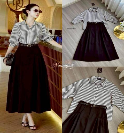 TAG :: NANNAPAT (NP)  CONCEPT :: งานต้อง Premium กำไรน้อยไม่ว่า คุณภาพ เละ เนื้อผ้าต้องดี  ♡DETAILS♡ วันไหนที่ต้องการความมั่นใจและดูเป็นมืออาชีพ ต้องหยิบชุดเซ็ตจาก NANNAPAT รุ่นนี้มาใส่เลยค่ะ! ลุคนี้ให้ฟีลลิ่ง 'Quiet Luxury' สวยแพงแบบไม่ต้องพยายาม ท่อนบนเป็นเสื้อเชิ้ตลายทางขาว-ดำ ทรงคลาสสิกที่ช่วยพรางหุ่นให้ดูเพรียว กิมมิคความเก๋อยู่ที่แพทเทิร์นช่วงแขน ที่ออกแบบมาเป็นทรงปีกค้างคาวเบาๆ ปลายแขนพับเบิ้ล ใส่แล้วดูไม่เป็นทางการจนเกินไป แอบมีความชิคซ่อนอยู่ แมทช์มากับกระโปรงยาวเอวสูงสีดำ ทรงเอไลน์ทิ้งตัวสวยมากกก ความเริ่ดคือดีเทลกระเป๋าหน้ากระโปรงทรงโค้งสุดเก๋ และมาพร้อมเข็มขัดหนังเส้นเล็กหัวอะไหล่ทองเข้าเซ็ต ช่วยเน้นเอวให้ดูคอดสับ สัดส่วนชัดเจน จะใส่เข้าเซ็ตก็ดูเป็นผู้บริหารสาวท่านหนึ่ง หรือจะเอาเชิ้ตไปแมทช์กับกางเกงยีนส์ในวันหยุดก็เอาอยู่ค่ะ    COLOR 》》》  NP. STANDARD SIZE  ( Size โดยประมาณนะค่ะ) S }} Bust 44"/ Waist 26-27"/ Hip free M }} Bust 46"/ Waist 28-29"/ Hip free L }} Bust 48"/ Waist 30-31"/ Hip free XL }} Bust 50"/ Waist 32-33"/ Hip free Langth }} = Shirt 24" / Skirt 37"  Care Dry clean only ควรซักแห้ง หรือ ซักมือ และเลี่ยงน้ำยาซักผ้า เพื่อเป็นการถนอมผ้า และ ลดความเสียหายวัสดุตกแต่ง นะคะ  ตรวจสอบสินค้าทุกครั้งก่อนออกจากร้านนะคะ จะได้ไม่เสียเวลาคะ  เปลี่ยนคืนสินค้ามีตำหนิต้องภายใน 10 วันนะคะ ป้ายไม่ตัด ห่อเดิมนะคะ  ได้รับสินค้าแล้ว ถ่ายวีดีโอตอนแกะเช็คสินค้าทุกครั้ง เผื่อมีปัญหา จะได้ใว้ยืนยันเพื่อการเปลี่ยนคืนนะคะ |