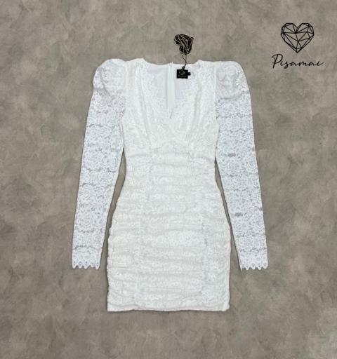 เดรสลูกไม้แขนยาวคอวีตัวสั้นสีขาวฉลุทั้งตัว สวยมากๆค่า ดีเท็ลรุ่นนี้ใส่สวย