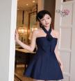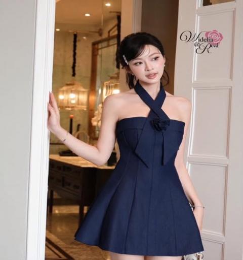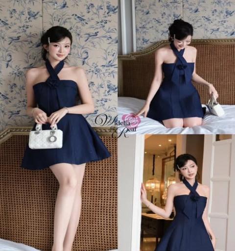 เดรสเกาะอก มีสายคล้องคอ มีดอกไม้ 1ดอก อกมีฟองน้ำ