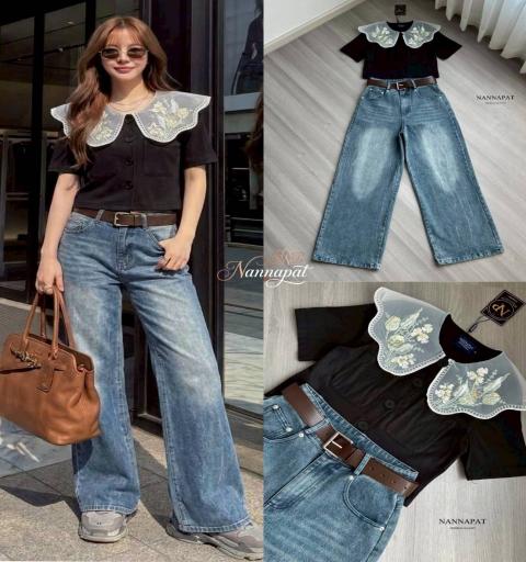 TAG :: NANNAPAT (NP)  CONCEPT :: งานต้อง Premium กำไรน้อยไม่ว่า คุณภาพ เละ เนื้อผ้าต้องดี  ♡DETAILS♡   "น่ารักกิ๊บเก๋จนต้องเหลียวมอง!   เซ็ตคอบัวปักลายดอกไม้ ลุคชิลๆ ที่แฝงความสวยปังระดับสิบ" ใครว่าลุคชิลๆ จะดูสวยแพงไม่ได้ NANNAPAT ขอเถียงด้วยชุดเซ็ตนี้เลยค่ะ! เป็นการหยิบเอาความเท่ของกางเกงยีนส์มาเบรกความหวานของเสื้อได้อย่างลงตัวสุดๆ ท่อนบนเป็นเสื้อสีดำแขนสั้น ทรงครอปนิดๆ กำลังน่ารัก ไฮไลท์ที่ใครเห็นก็ต้องตกหลุมรักคือ 'ปกคอบัวขนาดใหญ่ (Oversized Peter Pan collar)' ที่ทำจากผ้าตาข่ายซีทรู ปักลวดลายดอกไม้สไตล์วินเทจ (Floral embroidery) โทนสีเขียว-เหลืองอ่อนสุดประณีต เดินขอบหยักด้วยด้ายสีขาว ยิ่งทำให้ใบหน้าดูสว่างและเด็กลงไปอีก แมทช์เข้าเซ็ตมากับกางเกงยีนส์เอวสูงทรงขากระบอกใหญ่สีบลูฟอก ทรงกางเกงคือเป๊ะมาก พรางสะโพกและพรางต้นขาได้ดีเยี่ยม แถมความคุ้มค่าคือมี 'เข็มขัดหนังสีน้ำตาล' เข้าเซ็ตมาให้ด้วย! ใส่ไปเดินช้อปปิ้ง เที่ยวคาเฟ่ หรือไปเดทก็รับรองว่าน่ารักสะกดทุกสายตาค่ะ    COLOR 》》》  NP. STANDARD SIZE  ( Size โดยประมาณนะค่ะ) S }} Bust 36"/ Waist 25-26"/ Hip 38" M }} Bust 38"/ Waist 27-28"/ Hip 40" L }} Bust 40"/ Waist 29-30"/ Hip 42" XL }} Bust 42"/ Waist 31-32"/ Hip 44" Langth }} = Shirt 17" / Pants 41"  Care Dry clean only ควรซักแห้ง หรือ ซักมือ และเลี่ยงน้ำยาซักผ้า เพื่อเป็นการถนอมผ้า และ ลดความเสียหายวัสดุตกแต่ง นะคะ  ตรวจสอบสินค้าทุกครั้งก่อนออกจากร้านนะคะ จะได้ไม่เสียเวลาคะ  เปลี่ยนคืนสินค้ามีตำหนิต้องภายใน 10 วันนะคะ ป้ายไม่ตัด ห่อเดิมนะคะ  ได้รับสินค้าแล้ว ถ่ายวีดีโอตอนแกะเช็คสินค้าทุกครั้ง เผื่อมีปัญหา จะได้ใว้ยืนยันเพื่อการเปลี่ยนคืนนะคะ |