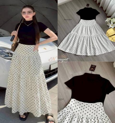 TAG :: NANNAPAT (NP)  CONCEPT :: งานต้อง Premium กำไรน้อยไม่ว่า คุณภาพ เละ เนื้อผ้าต้องดี  ♡DETAILS♡ วันไหนที่อยากได้ลุคสวยสง่า ดูแพงแบบไม่ต้องพยายาม ต้องหยิบชุดเซ็ตจาก NANNAPAT รุ่นนี้มาใส่เลยค่ะ! เป็นการจับคู่ไอเทมเบสิคให้ดูมีสไตล์ขั้นสุด ท่อนบนเป็นเสื้อแขนสั้นทรงคอปีน (Mock neck) สีดำสนิท ทรงเข้ารูปพอดีตัว ช่วยเสริมบุคลิกให้ดูสมาร์ทและช่วงคอดูระหงส์ แมทช์มากับไฮไลท์เด็ดคือ 'กระโปรงยาวลายจุด' (Polka Dot) เอวสูงปรี๊ด ดีไซน์ขอบเอวกว้างช่วยเก็บพุงให้เรียบเนียน และต่อผ้าเป็นชั้นๆ (Tiered Skirt) ทิ้งตัวพริ้วสวยมากกกก เดินสับๆ หมุนตัวรับลมคือปังสุดๆ แถมยังพรางสะโพกและช่วงขาได้ดีเยี่ยม ลุคนี้ใส่ไปทำงานก็ดูโปร ใส่ไปจิบกาแฟคาเฟ่ก็ชิค หรือจะใส่ไปดินเนอร์ก็ดูมีระดับ ซื้อเซ็ตเดียวคุ้มมาก เพราะสามารถหยิบเสื้อและกระโปรงไปแยกแมทช์กับชุดอื่นในตู้ได้อีกนับไม่ถ้วนเลยค่ะ!    COLOR 》》》  NP. STANDARD SIZE  ( Size โดยประมาณนะค่ะ) S }} Bust 31-32"/ Waist 26-27"/ Hip free M }} Bust 33-34"/ Waist 28-29"/ Hip free L }} Bust 35-36"/ Waist 30-31"/ Hip free XL }} Bust 37-38"/ Waist 32-33"/ Hip free Langth }} = Shirt 20" / Skirt 37"  Care Dry clean only ควรซักแห้ง หรือ ซักมือ และเลี่ยงน้ำยาซักผ้า เพื่อเป็นการถนอมผ้า และ ลดความเสียหายวัสดุตกแต่ง นะคะ  ตรวจสอบสินค้าทุกครั้งก่อนออกจากร้านนะคะ จะได้ไม่เสียเวลาคะ  เปลี่ยนคืนสินค้ามีตำหนิต้องภายใน 10 วันนะคะ ป้ายไม่ตัด ห่อเดิมนะคะ  ได้รับสินค้าแล้ว ถ่ายวีดีโอตอนแกะเช็คสินค้าทุกครั้ง เผื่อมีปัญหา จะได้ใว้ยืนยันเพื่อการเปลี่ยนคืนนะคะ |