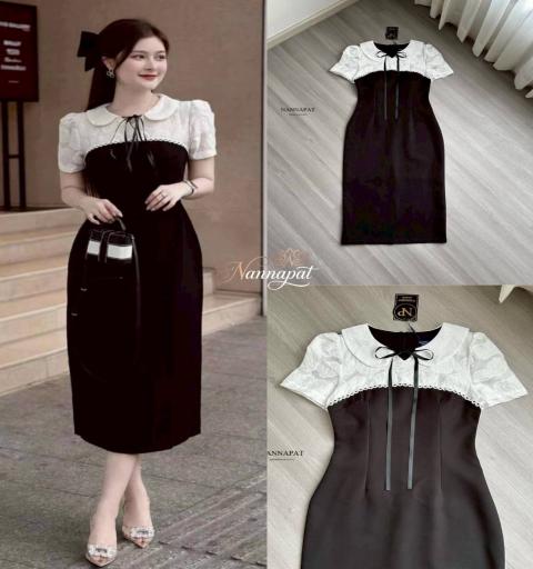 TAG :: NANNAPAT (NP)  CONCEPT :: งานต้อง Premium กำไรน้อยไม่ว่า คุณภาพ เละ เนื้อผ้าต้องดี  ♡DETAILS♡ กำลังหาชุดไปดินเนอร์หรู งานแต่ง หรืองานสำคัญอยู่หรือเปล่าคะ? เดรสยาวจาก NANNAPAT รุ่นนี้คือคำตอบ! เพราะนี่คือเดรสกันตายที่หยิบมาใส่เมื่อไหร่ก็รอด ออร่าความแพงจับทุกองศา ดีไซน์ทูโทน (Two-tone) ที่ตัดกันอย่างลงตัว ท่อนบนใช้ผ้าซีทรูสีขาวทอลายนูนดอกกุหลาบ 3D สวยประณีตมากกกก มาพร้อมคอบัว (Peter Pan collar) ขนาดใหญ่ที่ช่วยทำให้หน้าดูเด็กลง ประดับด้วยริบบิ้นโบว์สีดำเส้นยาวเพิ่มความหวาน กิมมิคที่รอยต่อระหว่างสีขาวและดำคือการเดินเส้นลูกไม้ฉลุลายเล็กๆ น่ารักมาก ช่วงลำตัวเป็นกระโปรงยาวทรงสอบสีดำสนิท มีการตีเกล็ดเข้ารูปช่วงเอว ทำให้ใส่แล้วดูมีเอวคอด สัดส่วนชัดเจน และพรางสะโพกได้ดีเยี่ยม ลุคนี้แมทช์กับกระเป๋าใบเล็กๆ ส้นสูงสักคู่ ก็สวยสะกดทุกสายตาแล้วค่ะ    COLOR 》》》  NP. STANDARD SIZE  ( Size โดยประมาณนะค่ะ) S }} Bust 32"/ Waist 27"/ Hip 36" M }} Bust 34"/ Waist 29"/ Hip 38" L }} Bust 36"/ Waist 31"/ Hip 40" XL }} Bust 38"/ Waist 33"/ Hip 42"  Care Dry clean only ควรซักแห้ง หรือ ซักมือ และเลี่ยงน้ำยาซักผ้า เพื่อเป็นการถนอมผ้า และ ลดความเสียหายวัสดุตกแต่ง นะคะ  ตรวจสอบสินค้าทุกครั้งก่อนออกจากร้านนะคะ จะได้ไม่เสียเวลาคะ  เปลี่ยนคืนสินค้ามีตำหนิต้องภายใน 10 วันนะคะ ป้ายไม่ตัด ห่อเดิมนะคะ  ได้รับสินค้าแล้ว ถ่ายวีดีโอตอนแกะเช็คสินค้าทุกครั้ง เผื่อมีปัญหา จะได้ใว้ยืนยันเพื่อการเปลี่ยนคืนนะคะ |