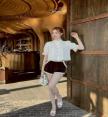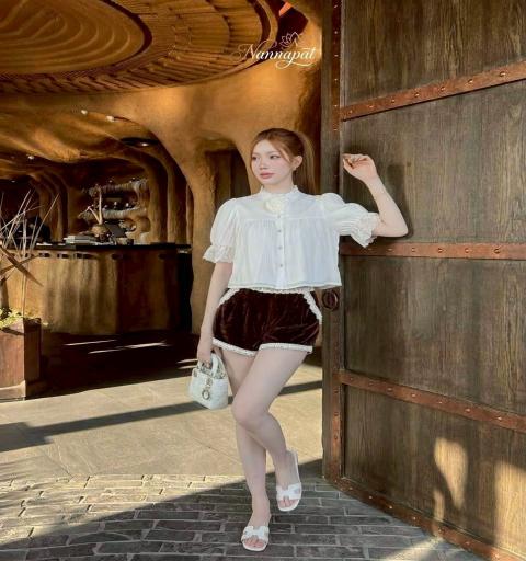 TAG :: NANNAPAT (NP)  CONCEPT :: งานต้อง Premium กำไรน้อยไม่ว่า คุณภาพ เละ เนื้อผ้าต้องดี  ♡DETAILS♡   "สวยหวานดั่งตุ๊กตาวินเทจ   เนรมิตลุคคุณหนูสายละมุน ด้วยเซ็ตแต่งดอกกุหลาบ 3D สุดเลอค่า!" วันพิเศษทั้งที ลุคต้องเป๊ะและโดดเด่นกว่าใคร! ขอแนะนำชุดเซ็ตจาก NANNAPAT รุ่นนี้ที่ผสานความหวานและความหรูหราไว้ด้วยกันแบบสิบเต็มสิบค่ะ ท่อนบนเป็นเสื้อสีขาวออฟไวท์ทรงคอตั้งระบายเบาๆ ดูผู้ดีมาก กิมมิคที่ขโมยหัวใจคือ 'ดอกกุหลาบ 3D' ขนาดใหญ่ที่คอเสื้อ(ถอดได้คะ) และกระดุมคริสตัลสุดหรู แขนเสื้อทรงตุ๊กตาพองๆ ปลายแขนตัดต่อลูกไม้ฉลุลายเพิ่มความฟรุ้งฟริ้ง แมทช์คู่มากับกางเกงขาสั้นที่ใช้เนื้อผ้า 'กำมะหยี่ (Velvet)' สีน้ำตาลเข้ม ดูแพงและมีเทกเจอร์ที่สวยเงางามยามล้อแสงไฟ ตกแต่งขอบเอวและกระเป๋าด้วยลูกไม้สีขาวเข้าเซ็ตกับตัวเสื้อแบบพอดีเป๊ะ จะใส่ไปจิบชายามบ่าย (High Tea) ดินเนอร์หรู หรือคาเฟ่สไตล์คลาสสิก ลุคนี้ก็เอาอยู่ เป็นความสวยที่มองกี่ทีก็ไม่เบื่อแน่นอนค่ะ    COLOR 》》》  NP. STANDARD SIZE  ( Size โดยประมาณนะค่ะ) S }} Bust 39"/ Waist 26"/ Hip 38" M }} Bust 41"/ Waist 28"/ Hip 40" L }} Bust 43"/ Waist 30"/ Hip 42" XL }} Bust 45"/ Waist 32"/ Hip 44" Langth }} = Shirt 18.5" / Pants 13.5"  Care Dry clean only ควรซักแห้ง หรือ ซักมือ และเลี่ยงน้ำยาซักผ้า เพื่อเป็นการถนอมผ้า และ ลดความเสียหายวัสดุตกแต่ง นะคะ  ตรวจสอบสินค้าทุกครั้งก่อนออกจากร้านนะคะ จะได้ไม่เสียเวลาคะ  เปลี่ยนคืนสินค้ามีตำหนิต้องภายใน 10 วันนะคะ ป้ายไม่ตัด ห่อเดิมนะคะ  ได้รับสินค้าแล้ว ถ่ายวีดีโอตอนแกะเช็คสินค้าทุกครั้ง เผื่อมีปัญหา จะได้ใว้ยืนยันเพื่อการเปลี่ยนคืนนะคะ |