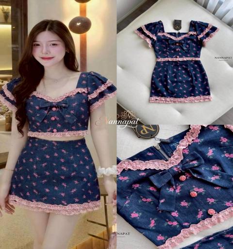 TAG :: NANNAPAT (NP)  CONCEPT :: งานต้อง Premium กำไรน้อยไม่ว่า คุณภาพ เละ เนื้อผ้าต้องดี  ♡DETAILS♡  "น่ารักจนใจเจ็บ!  เซ็ตยีนส์ลายดอกแต่งลูกไม้ ลุคคุณหนูสายหวานที่เห็นแล้วต้องเอฟ!"  "ใครว่ายีนส์ต้องเท่เสมอไป? ชุดเซ็ตจาก NANNAPAT รุ่นนี้ขอเถียงใจขาดเลยค่ะ! เพราะนี่คือการจับคู่ผ้ายีนส์สีเข้ม เข้ากับลายพิมพ์ดอกกุหลาบจิ๋วสีชมพูสุดน่ารัก ได้ลุคที่ทั้งทะมัดทะแมงและหวานละมุนในชุดเดียว ดีเทลท่อนบนคือยืนหนึ่ง เป็นเสื้อครอปคอเหลี่ยมกว้าง โชว์ช่วงคอให้ดูระหงส์ แขนสั้นทรงตุ๊กตาพองๆ แต่งขอบด้วยลูกไม้ฉลุสีชมพูเข้ากับลายดอกไม้ กิมมิคสุดปังคือโบว์ใหญ่ช่วงหน้าอก และกระดุมดอกไม้สีชมพูเรียงเม็ด แมทช์คู่กับกระโปรงยีนส์สั้นทรงเอเอวสูง ที่ช่วยพรางสะโพกและทำให้ขาดูเรียวยาว ชายกระโปรงแต่งขอบลูกไม้สีชมพูเพิ่มความฟรุ้งฟริ้งไปอีกขั้น! จะใส่ไปถ่ายรูปตู้สติ๊กเกอร์ นั่งคาเฟ่ชิคๆ หรือไปเดทก็รับรองว่าแฟนต้องชมว่าน่ารักแน่นอนค่ะ คุ้มมากๆ เพราะเอาไปแยกชิ้นใส่กับตัวอื่นก็เก๋ไปอีกแบบ    COLOR 》》》  NP. STANDARD SIZE  ( Size โดยประมาณนะค่ะ) S }} Bust 34"/ Waist 26"/ Hip 36" M }} Bust 36"/ Waist 28"/ Hip 38" L }} Bust 38"/ Waist 30"/ Hip 40" XL }} Bust 40"/ Waist 32"/ Hip 42" Langth }} = Shirt 16" / Skirt 17" (ซับในกางเกง)  Care Dry clean only ควรซักแห้ง หรือ ซักมือ และเลี่ยงน้ำยาซักผ้า เพื่อเป็นการถนอมผ้า และ ลดความเสียหายวัสดุตกแต่ง นะคะ  ตรวจสอบสินค้าทุกครั้งก่อนออกจากร้านนะคะ จะได้ไม่เสียเวลาคะ  เปลี่ยนคืนสินค้ามีตำหนิต้องภายใน 10 วันนะคะ ป้ายไม่ตัด ห่อเดิมนะคะ  ได้รับสินค้าแล้ว ถ่ายวีดีโอตอนแกะเช็คสินค้าทุกครั้ง เผื่อมีปัญหา จะได้ใว้ยืนยันเพื่อการเปลี่ยนคืนนะคะ |