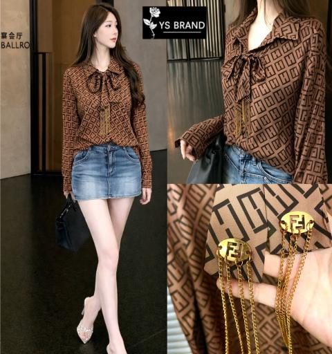 Brand: Fendi Detail :เสื้อเชิ้ตแขนยาวคอปก ผ้าเชิ้ตเนื้อนอย่างดี ผ้าดีมากๆ ผ้าเนื้อเย็นใส่สบาย เย็บกระดุมด้านหน้า มาพร้อมสายผูกโบว์ที่คอ เย็บอะไหล่สีทองFendi สวยโดดเด่นมากๆคร่า มาพร้อมป้ายคอ Fendi Tagครบสวยมาก งานคุณภาพ ห้ามพลาด จัดเลยจ้า