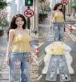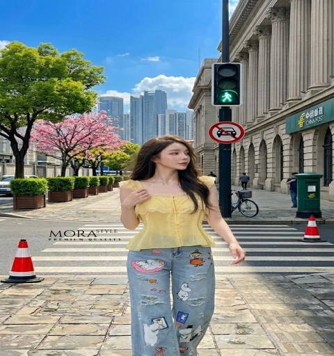 งานสุดปัง Mora style พร้อมเสริฟ  โมราสไตล์  ••Tag : Mora••   : เซ็ท 2 ชิ้น เสื้อสายเดี่ยวแขนแต่งระบายลูกไม้ ช่วงอกแต่งระบาย งานกระดุมด้านหน้า ผ้าใส่สบายไม่ร้อนเหมาะกับอากาศบ้านเราตอนนี้เลยค่ะ มาพร้อมกับกางเกงยีนส์ขายาว ขากระบอกกลาง แต่งลายน้องการ์ตูน น่ารัก แต่งขาดเบาๆ เป็นอีกรุ่นที่ใส่เที่ยวชิลล์ชิลล์ได้เลยค่ะ  ขนาดโดยประมาณ +/-  Size : S M L XL Size  S : อก : ฟรี“ เอว 24-25" สะโพก 36-37” ยาว 40”  M : อก : ฟรี“ เอว 26-27" สะโพก 38-39” ยาว 40”  L : อก : ฟรี“ เอว 28-29" สะโพก 40-41” ยาว 41”  XL : อก : ฟรี“ เอว 30-31" สะโพก 42-43” ยาว 41”   เสื้อ อกได้ถึง 36“ ยาว 19“  : สีของรูปชุด ขึ้นอยู่กับอุปกรณ์ที่ใช้ถ่าย และ อุปกรณ์ที่แสดงภาพ รวมถึงแสงขณะทำการถ่ายภาพ |