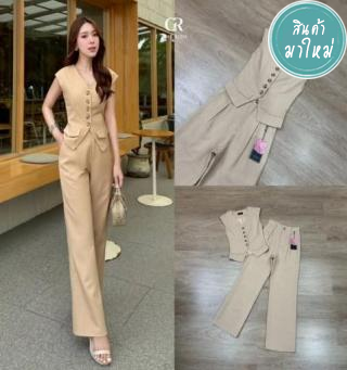 เป็นชุดที่ใส่แล้วดูเท่ กับชุดเซ็ท 2 ชิ้น เสื้อ+กางเกง ตัวเสื้อคอวี