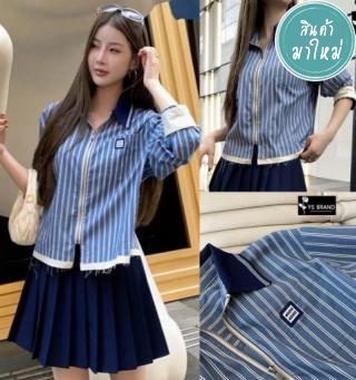 เซ็ทเสื้อคอกุ๊น ผ้าทอลาย มีซับใน