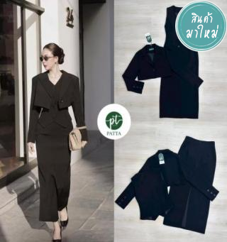 เซต3ชิ้น สีดำ เสื้อคลุมแขนยาวตัวสั้นมีกระดุมหน้า