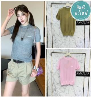 เสื้อแขนยาวทูโทนไหมพรม MIU MIU