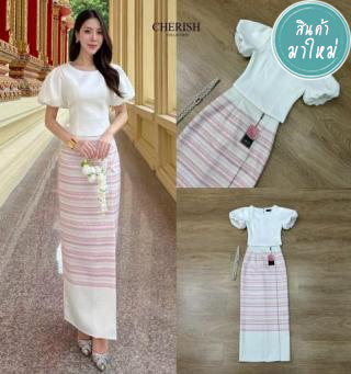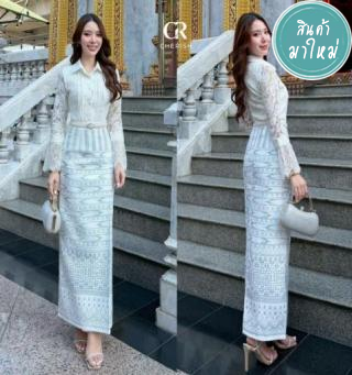 เซ็ทชุดไทย ชุดงานบุญ 3 ชิ้น เสื้อลูกไม้แต่งกระดุมมีซับในอย่างดี