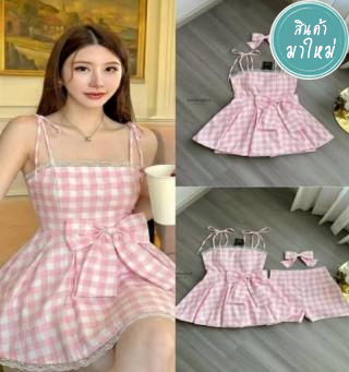 เดรสตัวยาว สวยหรูโดดเด่น เนื้อผ้า3Dทั้งตัวโทนสีชมพูสวยหวาน