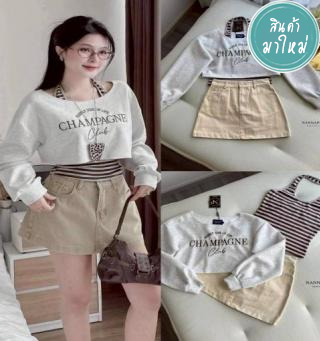 ชุดเซ็ตเสื้อตัวยาวดีไซน์กึ่งเดรส มาพร้อมกางเกงขาสั้นเข้าชุด