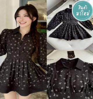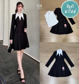 ชุดเดรสแขนสั้นผ้าพรีเมียมทวิต (Tweed Dress) ที่นุ่มมากๆ ดีไซน์พิเศษด้วยคอปกแต่งด้วย