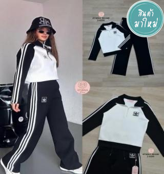 เสื้อ+กางเกงขายาว Set 2 ชิ้น เสื้อแขนยาวดีไซน์ด้านหน้าแต่งซิปและปักตัวอักษร