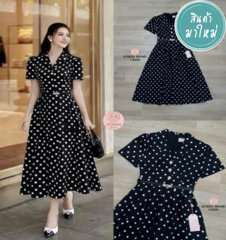Dress+เข็มขัด Maxi Dress ดีไซน์แต่งกระดุมและกระเป๋าสามารถใช้งานได้จริง
